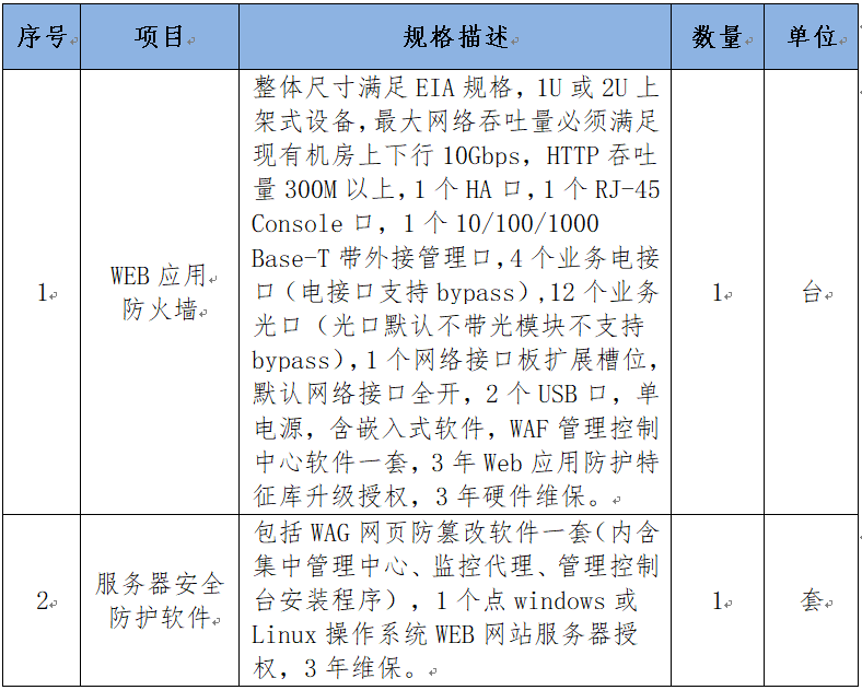 2、项目名称:WEB网络应用层安全防护软硬件设备采购项目